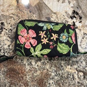Chic wallet black with floral pattern. Includes multiple pockets. Ideal for daily use.