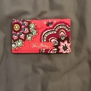 Slim card holder with vibrant floral paisley print. Prominent Vera Bradley logo on front. Multiple card slots for essentials. Lightweight and easy to carry.
