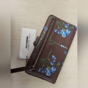 Vera Bradley Brown Bachleor Button Brown Wallet faux leather Blue Floral New Tags *** In Excellent Condition Smoke Free Clean Home *** Multiple card slots and phone carrying compartment