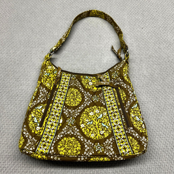 Stylish Vera Bradley tote with intricate patterns. Features a blend of brown and yellow. Perfect for everyday use.