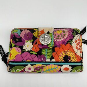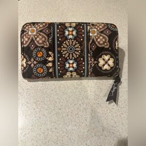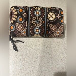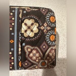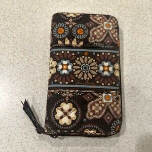 Vera Bradley Brown floral wallet with multiple compartments and zipper closure