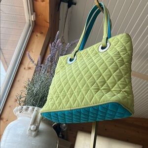 Vera Bradley CRABTREE & EVELYN Tote Purse Quilted Key Lime Green & Turquoise