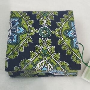 NWT Vera Bradley Cambridge Navy Blue Green Quilted Pattern Note Box. Rare & Retired Fall 2007 leaf paisley pattern! Square size of 3.5" X 3.5" X 1", flip top cover, logo patch on back of box, blue sticky note pad never used. Brand new with tags!