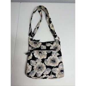 Vera Bradley Camelia Hipster Crossbody Bag Quilted Black Gray Flower Pattern