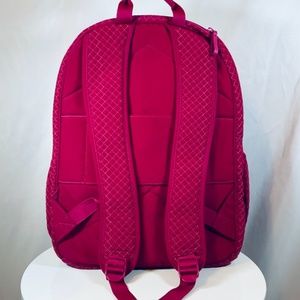Vera Bradley Quilted Microfiber Campus Backpack in Passion Pink. This backpack is deluxe and loaded with features! It is made from a soft quilted microfiber fabric. There are four separate compartments and two large side pockets that are elasticized to accommodate larger items. There is also a grommet for headphones.The front pocket is an open space with a zip closure. The next compartment has three slip pockets, four pen slips, an I.D. window and a zip closure. The main compartment has two mesh pockets and a zip closure. There is also a laptop compartment that accommodates a 15” laptop. The back has a trolley sleeve for ease when traveling. The backpack measures 12” W x 15.5” H x 6.5” D with two adjustable straps on the back and a 2” handle drop. The backpack has a 25L capacity is NWT and retails $145. Offers welcome!