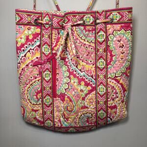 Vera Bradley Capri Melon Paisley Print Quilted Drawstring Backpack