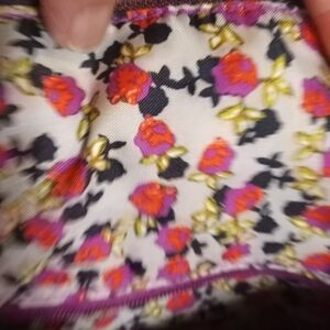 🌴Beautiful handbag with phone charger access or headphone access. Lots of pockets and easy access with magnetic closures. The pink, burgundy, and orange combination fabric is beautifully quilted. Good condition. 100% cotton