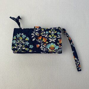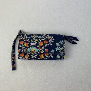 Vera Bradley “Chandelier Floral” Pattern Trifold Wallet Wristlet Blue