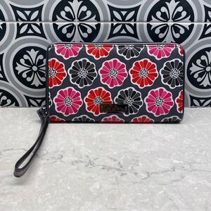 Stylish wristlet with floral pattern. Features a secure zip closure. Perfect for on-the-go use.