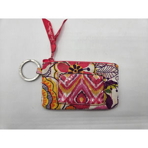 Vera Bradley Clementine Wallet Card Coin Purse Key Chain Pink Orange Floral