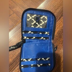 Elegant wallet with intricate black and blue design. Ideal for everyday use.