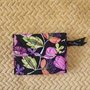 Keywords: Vera Bradley, coin purse, zip pouch, small wallet, floral, black, accessory, travel, gift, organizer, card holder, cosmetic bag, mini bag