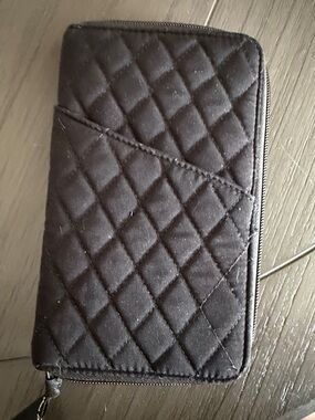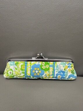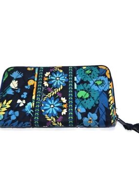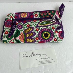 Tags and markings: Interior woven Vera Bradley label and printed Vera Bradley script on the lining and wrist strap.