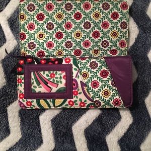 For sale a Vera Bradley wallet. Magnetic closure. Two separate areas to hold money and cards. Separate front pocket as well. Please look at pictures carefully, there are some light stains and wear on one corner. Make me an offer! So much life left. Smoke free home.