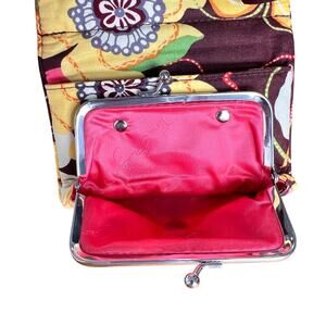 Vera Bradley Compact Taxi Wallet Clear ID Kisslock Coin Yellow Pink Brown Floral