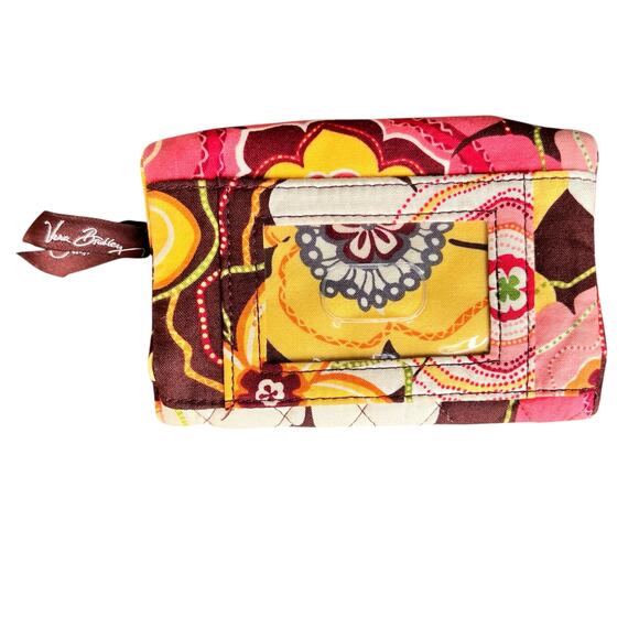 Vera Bradley Compact Taxi Wallet Clear ID Kisslock Coin Yellow Pink Brown Floral