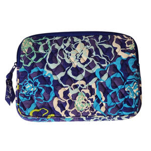 Vera Bradley Cosmetic Case Blue White Green Floral 9"x7" Travel Vacation Clutch