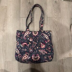 Vera Bradley Cotton Tote Bag Paisley Print Pink and Grey Inside Pockets