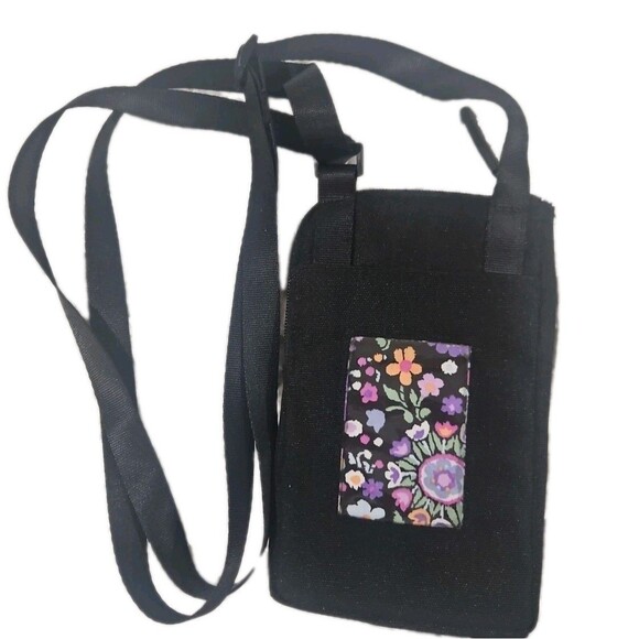 Vera Bradley Crossbody Phone Purse Black Floral Pattern Inside RN 156007 VB120
