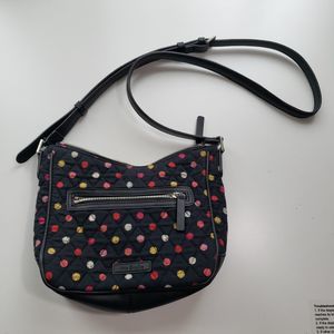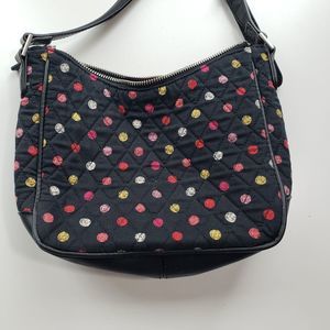 Vera Bradley Crossbody Purse; Black with Colorful Polka Dots; Approx. 8 x 9 x 3