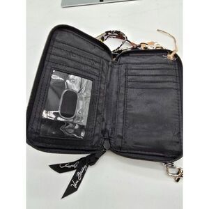 Vera Bradley Crossbody Wristlet Wallet - Black & White Floral Pattern Cocoa moss