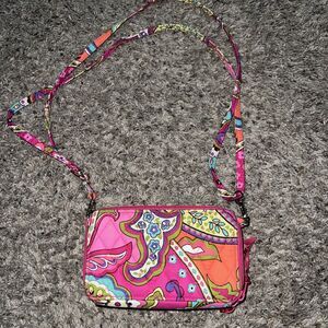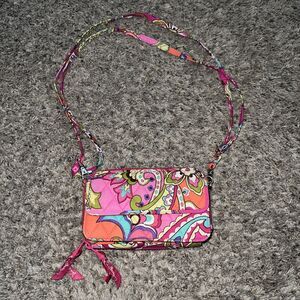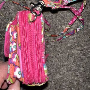 Vera Bradley Crossbody Zip Around Wallet Pink Floral 6 1/2 X 4