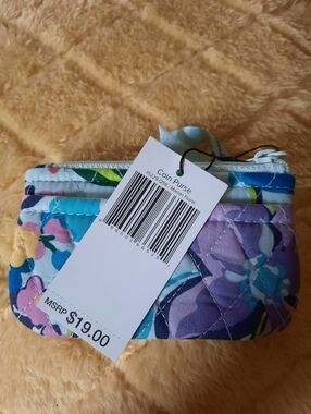 Compact quilted wristlet coin pouch with a blue and white paisley print. Lightweight and easy to carry for cards, coins, and small essentials. Zipper closure and wrist strap for secure, on-the-go convenience. Stylish blue patterned design suits casual and travel use.