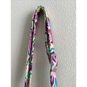 This Vera Bradley crossbody purse features a fun and playful design with Disney's iconic Plums Up Mickey and Minnie Mouse. The small size makes it perfect for a day out or a night on the town, and the multicolor palette adds a pop of color to any outfit. Made in China with quality materials, this purse is a must-have for any Disney fan or collector. The brand's attention to detail is evident in the impeccable stitching and design, making it a great addition to any collection.