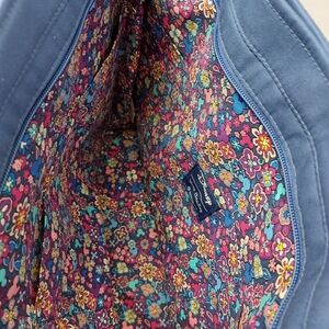 large embroidered tote measures about 18w x 14h with 6 interior slip pockets and top zip closure hidden pocket new without tags