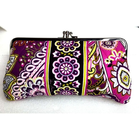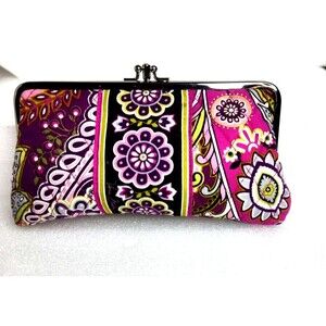 Vera Bradley Double KISSLOCK WALLET Very Berry Paisley Clutch Bag PINK EUC 8"x5"