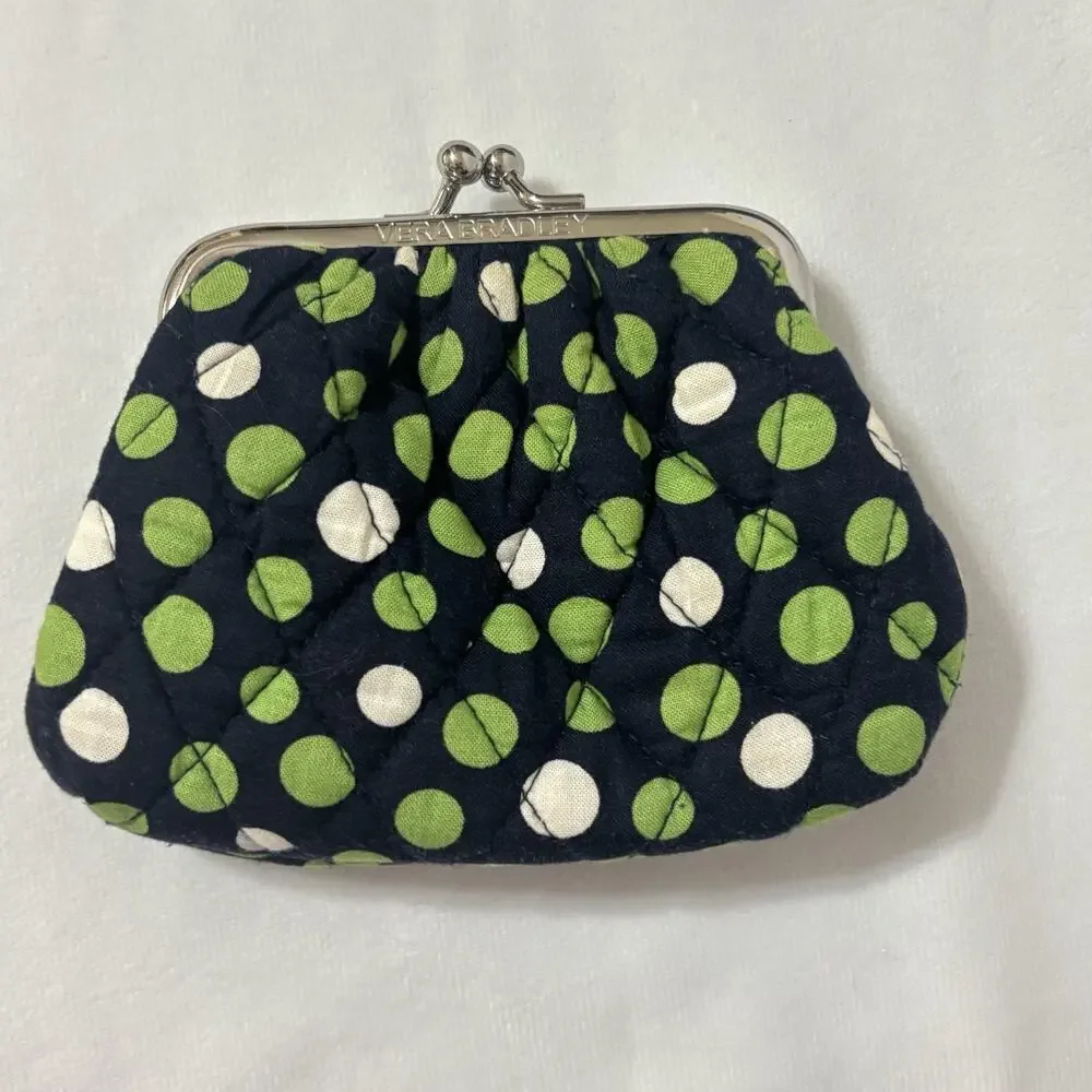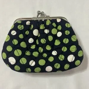 Vera Bradley Double Kiss Kisslock Coin Change Purse Retired Pattern Green Dots