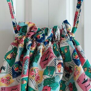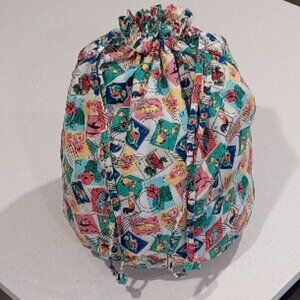 Vera Bradley Drawstring Bucket Bag in Retired Pattern "Cuban Stamps"