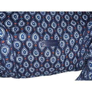 The Vera Bradley Duffel Travel Bag Luggage Set in the navy blue spade pattern features a vibrant multi-color exterior made of cotton quilted fabric. This extra-large 3-piece set is perfect for travel, with a zipper closure and double handles for easy transportation. The bag includes a pouch accessory and is lined with blue material, making it a stylish and practical choice for women on the go. Made by Vera Bradley, known for their unique patterns and durable construction, this duffel travel bag set is a must-have for any woman looking for both fashion and function in her luggage.
