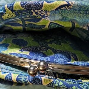 This purse is in EUC. It has 2 large pockets on the sides with pockets inside. There are 4 pockets and zipper inside the kiss lock. This purse holds a lot! It has rolled straps that stay up on your shoulder. No stains or rips.