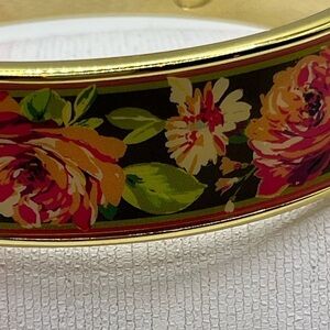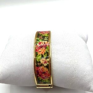 Vera Bradley Enamel English Rose Floral Hinged Gold Tone Bangle Bracelet Pink