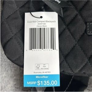 Vera Bradley Essential Compact Backpack in Microfiber Classic Black NWT