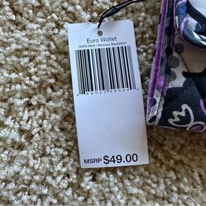 Vera Bradley Euro Wallet in Mimosa Medallion Black and Purple Patterned Wallet