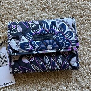 Elegant Vera Bradley wallet with a bold black and purple pattern. Ideal for keeping essentials organized.