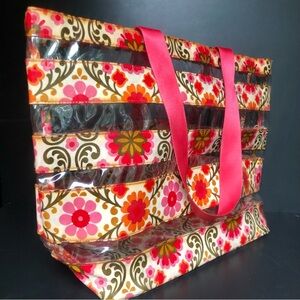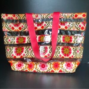 Vera Bradley FOLKLORIC Plastic Tote Bag Pink Red Clear Striped Beach Bag