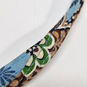 Vera Bradley lanyard made of fabric with silver-tone hardware. Clip and keyring on end. Measures about 38" long. Excellent condition and smoke-free home.