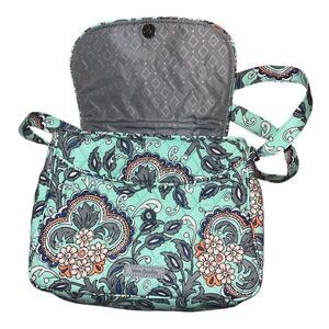 Vera Bradley Fan Flowers Medium Flap Crossbody Green Bag EUC