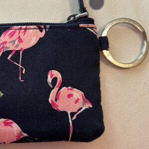 Vera Bradley "Flamingo Fiesta" Cotton Zip ID Case w/ Key Ring (Retired Pattern)
