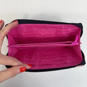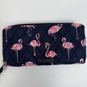 Vera Bradley Flamingo Fiesta Quilted Zip Around Wallet RFID Navy Pink Birds