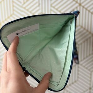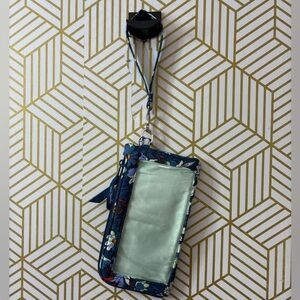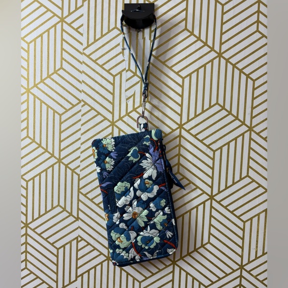 Stylish floral blue phone wristlet with a convenient strap. Perfect for keeping your phone secure and accessible.
