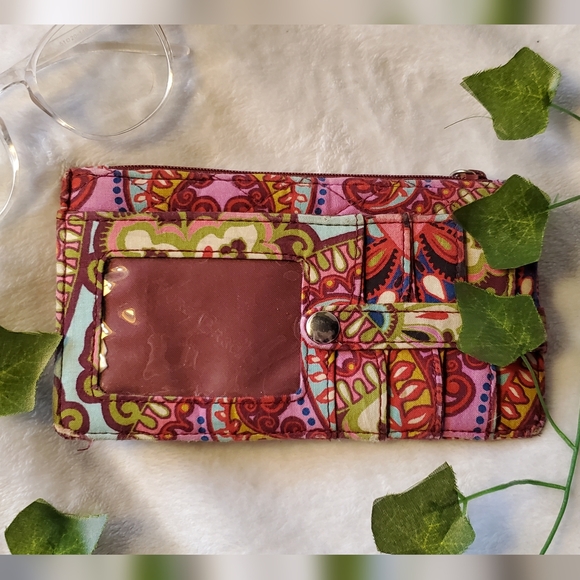 Vibrant Vera Bradley wallet with intricate patterns!! Includes a ID window and card slots. very early 2000s vibe and would fit in the wardrobe of any girl who loves to have fun