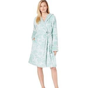 Vera Bradley Floral Embossed Plush Bath Robe S/M Belted Mint Green Soft Cozy