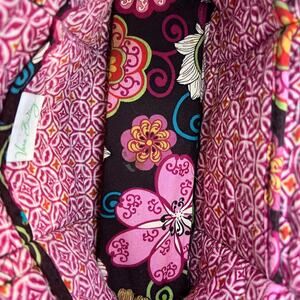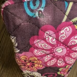 Brown and pink floral fabric Vera Bradley handbag. In great used condition. A couple of tears on bottom of bag. See pictures. Plenty of life left in this hardy Vera Bradley bag.