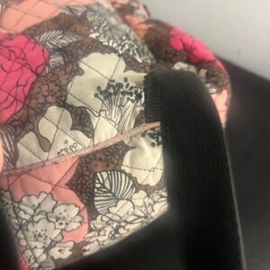 Stylish floral quilted backpack with vibrant pink and cream tones. Perfect for everyday use.