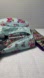 Charming quilted cosmetic pouch with magnetic closure and pencil case with floral patterns. Features vibrant exterior and clean interior.