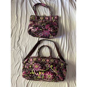 Vera Bradley Floral Quilted Duffle Bag & Tote Set Travel Pink Brown Large